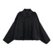 – Loose fit with full-length sleeves and fold-over lapel collar