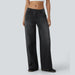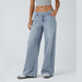 Featuring a relaxed wide-leg fit and a chic asymmetrical waist, they bring a modern twist to a timeless style. The zip fly and zipper pockets add both functionality and flair, while the low-rise cut gives them that effortless, laid-back vibe.