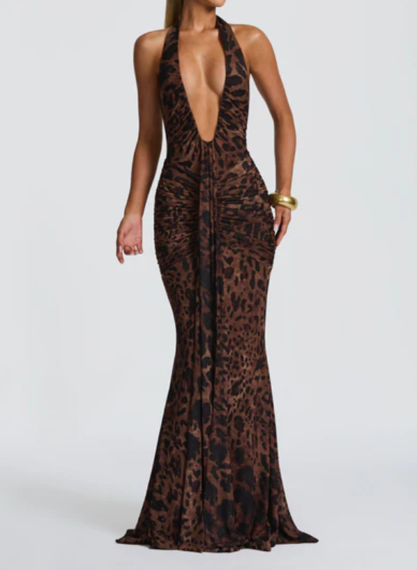 • Design: A sleek silhouette featuring a deep plunge neckline for bold, elegant impact