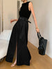 • Design: Minimalist maxi silhouette with a side split for graceful movement