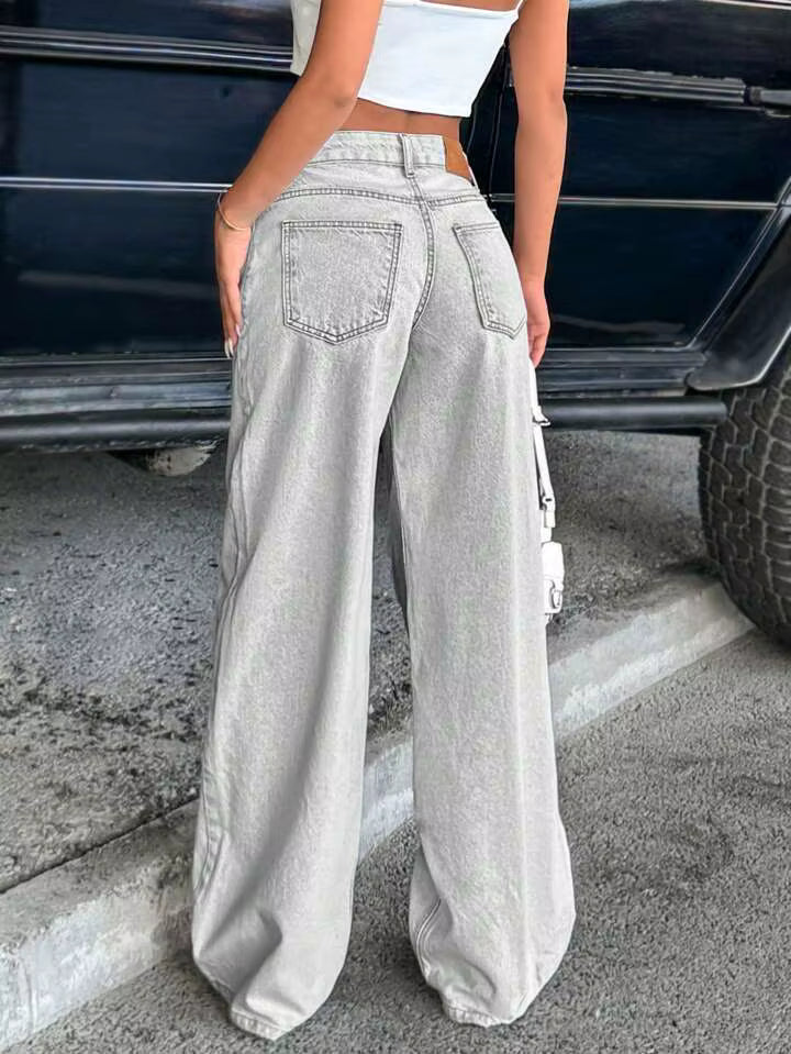 Designed for effortless everyday style, these grey low-waist wide-leg jeans bring a clean streetwear silhouette with a relaxed, confident attitude. Crafted from durable cotton-denim with a structured feel, they feature a full-length loose fit, classic button fly, and subtle distressed wash that adds depth without looking overly worn. The low-rise cut gives them a nostalgic, early-2000s vibe while still feeling modern and easy to style.